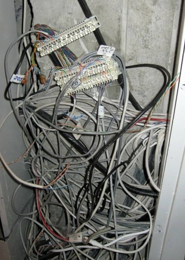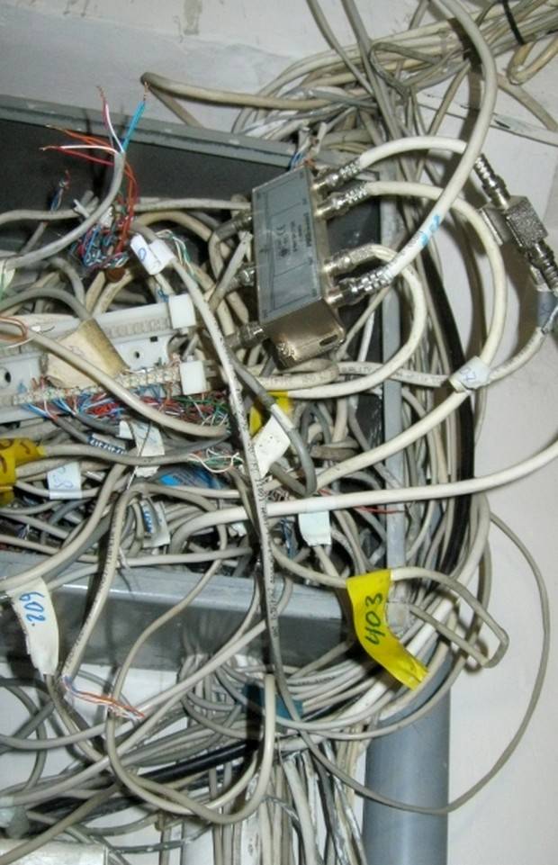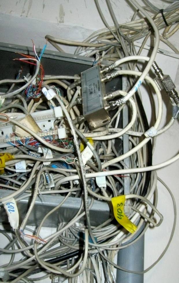 Rodas interesanta situācija: kam šis bardaks būtu jāsakārto? Nama apsaimniekotājs telekomunikāciju kabeļiem pat pieskarties nedrīkst. Savukārt, ja namam pieslēgušies kādi pieci provaideri - katram no viņiem interesē tikai savi kabeļi. Un daudzos gadījumos viņi nav ieinteresēti investēt būvdarbos: speciālu kabeļu cauruļu, penāļu ierīkošana nemaksā lēti. Ja klients pakalpojumu saņem, viņš maksā, lieta darīta, un visi apmierināti. Varbūt vienīgi izņemot tīkla montieri, kuram bojājumu gadījumā jāspēj šais džungļos orientēties.