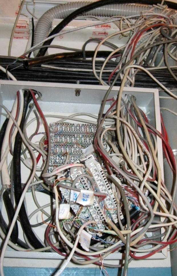 signalizācijas un visādu citādu kabeļu, no kuriem darbojas tikai daļa.
