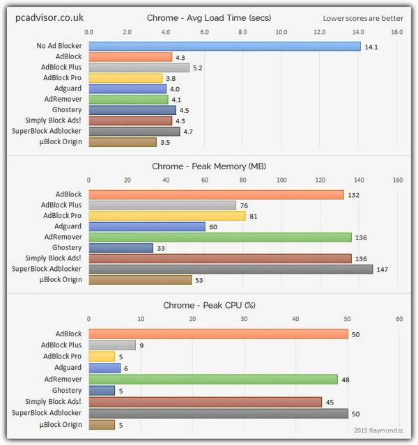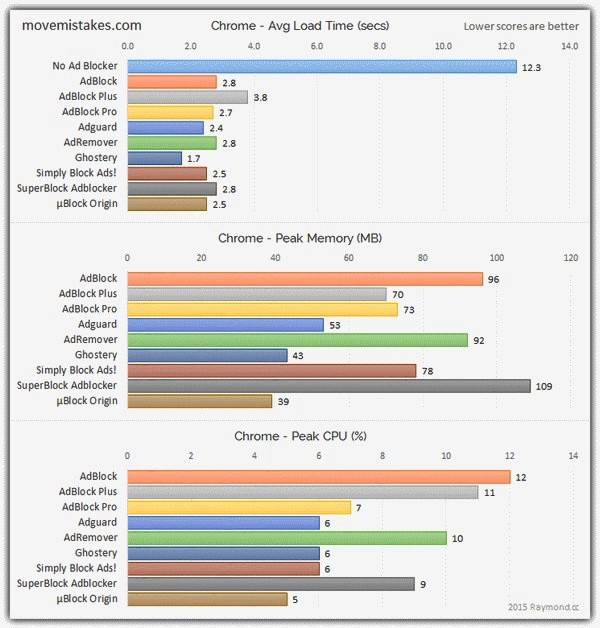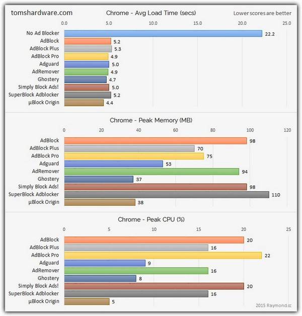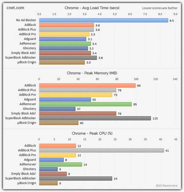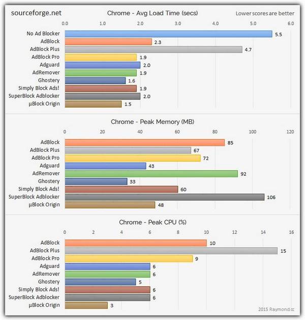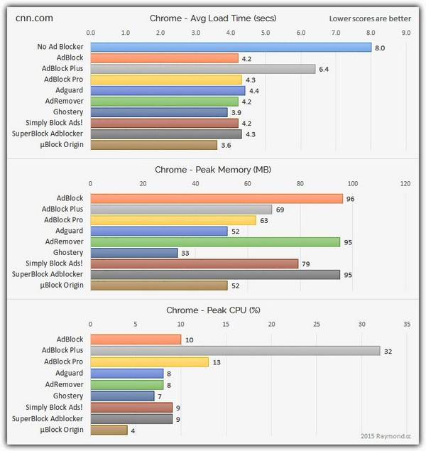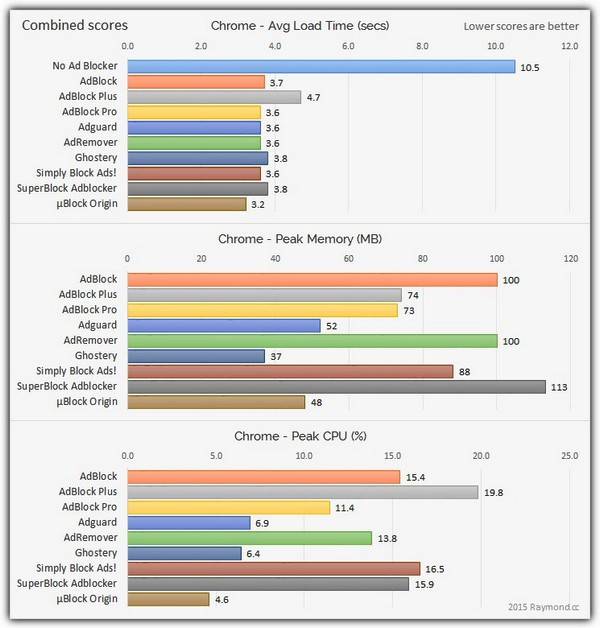 Neatkarīgais izstrādātājs Raimonds no Malaizijas savā blogā publicējis izsmeļošu reklāmbloķētāju testa analīzi. Apkopoti tika rezultāti no šādiem paplašinājumiem: