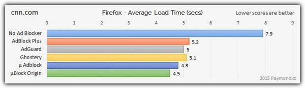 Reklāmbloķētāju kvalitāte, lapu ielādes laiks un resurspatēriņš ļoti stipri atšķiras atkarībā no konkrētās web lapas.