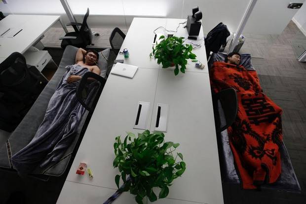 Cui Meng, firmas GooPal dibinātājs, stāsta, ka IT attīstība Ķīnā ir daudz straujāka nekā ASV; arī konkurence pašu mājās ir milzīga. Strādāt virsstundas nākoties gandrīz vai ik dienas. Tāpēc darbiniekiem tiek atļauts gulēt gan uz spilvena pie datorgalda, gan uz dīvāniem. Saimnieks personīgi apsedz gulošos, gan arī atļaujas atpūsties pats.