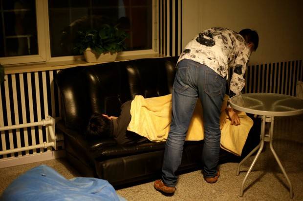 Kāds firmas DouMiYouPin visai augsta ranga līdzstrādnieks darbdienu naktis izguļ turpat konferenču zālē kopā ar trim citiem kolēģiem. Braukāt katru dienu uz mājām Pekinas priekšpilsētā sanākot pārāk mokoši. Darbinieks ceļas 8.30, kopējā izlietnē nomazgājas, un 9.30 sāk pildīt darba pienākumus. Arī pasūtīt ēdienu vairākiem cilvēkiem reizē sanākot izdevīgāk. Kaur arī virsstundas apmaksā pieklājīgi, DouMiYouPin darbinieks sūdzas, ka trīsgadīgo meitu redzot tikai nedēļas nogalēs, kas viņam liekot justies vainīgam.