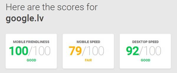 Visi rezultāti tiek izteikti punktos; maksimālais - 100 punktu. Platforma piedāvā arī saņemt pilnu testa atskaiti. Tests nav uzskatāms par "absolūto patiesību"; viss notiek no Googles specifiski-subjektīvā viedokļa. Tiek izmantots API "PageSpeed Insights", kur vislielākā vērība tiek piegriezta 2 parametriem - laiks, kurā ielādējas web lapas augšējā daļa un laiks, kurā ielādējas lapa pilnībā.