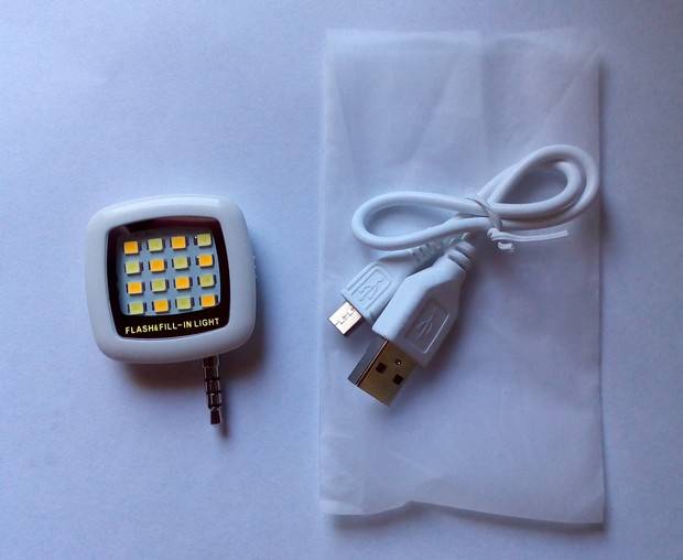 Tātad apskatāmā ierīce ir autonoms gaismas avots ar iebūvētu 200 mAh litija akumulatoru. Zibspuldze pieejama trīs krāsās: baltā, melnā un rozā priekš jaunkundzēm. Komplektā ietilpst microUSB standarta lādēšanas vads un mīksta materiāla maisiņš. Izpildījuma kvalitāte nepieredzēti augsta, un ne pie kā nevar piesieties. Pat stikliņš pārklāts ar noplēšamu aizsargplēvīti. Korpusa plastmasa gan parastais polistirols, bet nekur neredzēja skrambas. Abas korpusa pusītes savienotas bez spraugām. Lādēšanai ierīci var pieslēgt jebkuram telefona lādētājam ar USB savienojumu vai datora USB ligzdai. Ir lādēšanas indikācija ar sarkanu LED, kas pēc uzlādēšanas nodziest.